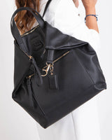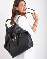 Lo zaino Anita è in ecopelle martellata, chiusura con zip e moschettone. Internamente si presenta foderato e con taschini. Sulla parte anteriore un taschino con chiusura a zip e spallacci logati regolabili garantiscono comodità e praticità.