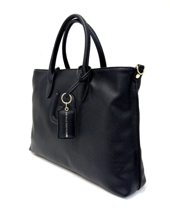 Roxana è una borsa strutturata, dalla forma classica e rettangolare. Presenta un doppio manico rigido corto per portabilità a mano e una tracolla regolabile in tinta. L'interno, foderato e dotato di taschini, è protetto da una comoda chiusura con zip e tirazip. Arricchito di logo sulla parte frontale e ciondolo, Roxana è una borsa che è perfetta per le tua giornate super impegnative, senza mai perdere un tocco di classe ed eleganza.
