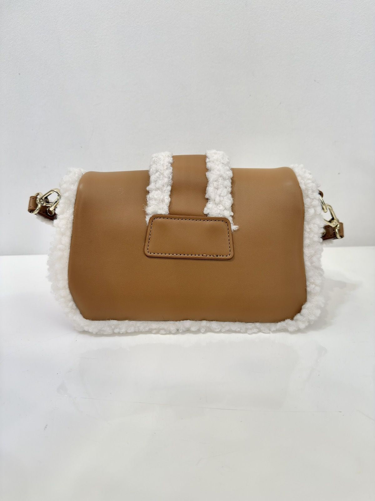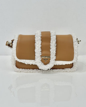 Fluffy di Pashbag è una borsa strutturata e morbida all'interno, con doppio manico. Uno per portabilità a mano/spalla ed una tracolla.Internamente presenta dei taschini per permettere l'organizzazione degli effetti personali. Presenta una patta logata in color oro, con bottone metallico.