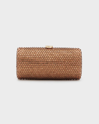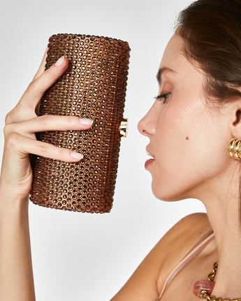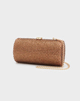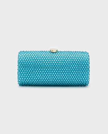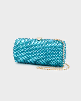 Rubino è una clutch dalla forma verosimilmente cilindrica, con chiusura a scatto. Arricchita, lungo tutta la superficie, con applicazioni brillanti in tinta. Dotata di tracolla color oro, Rubino è la scelta perfetta per i tuoi eventi!