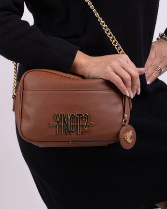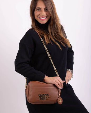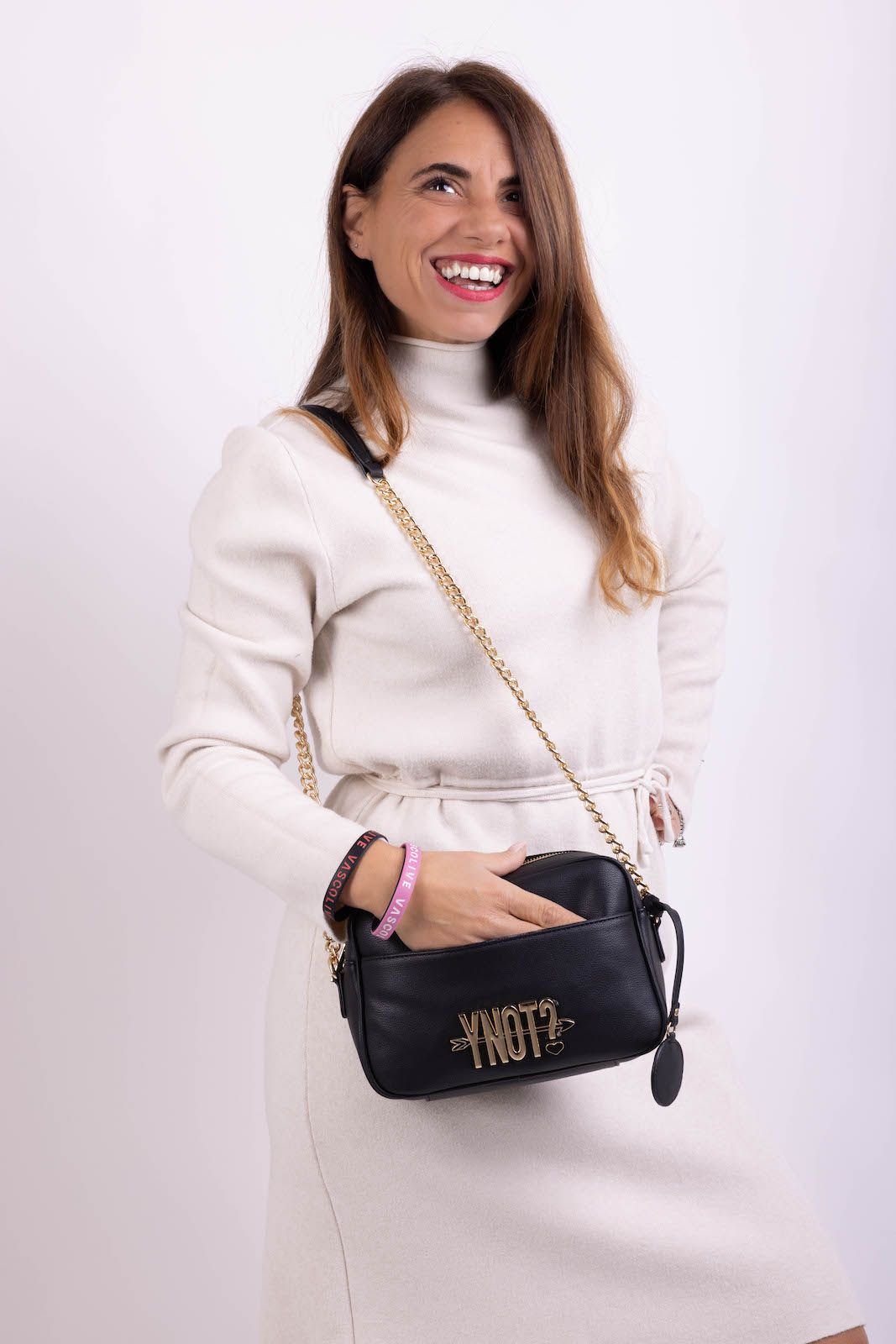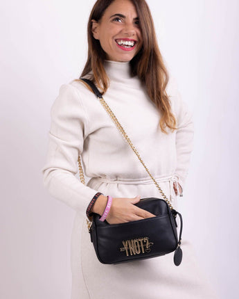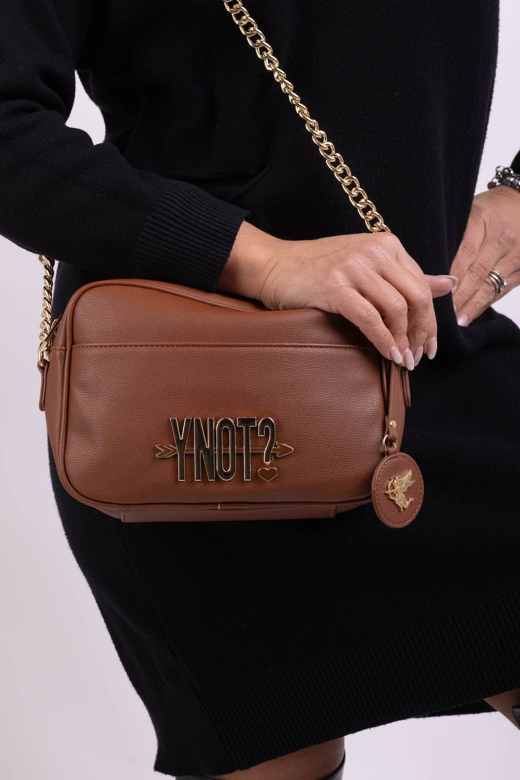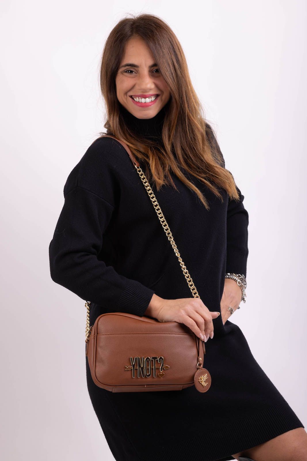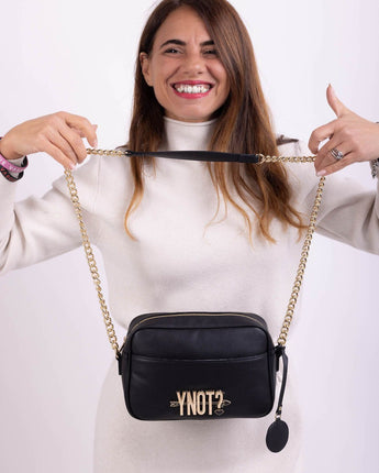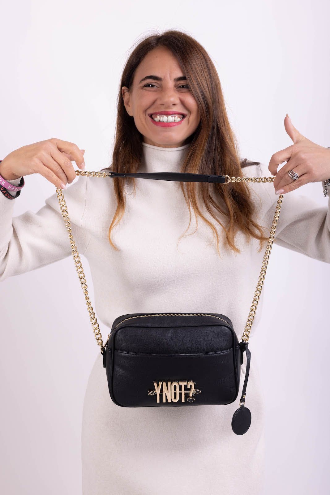 Questa borsa di Ynot? è compatta, capiente ed elegante. Presenta un interno foderato ed organizzato con scomparti, una comodissima tasca frontale e una sicura chiusura con zip. Presenta una tracolla a catena color oro che dona eleganza e luce. Il tutto è arricchito dal logo dorato sulla parte frontale. Questa borsa è perfetta per ogni occasione!