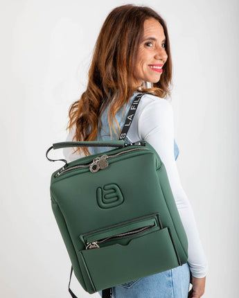 Clarissa è uno zaino capiente, dallo stile senza tempo. Realizzato in tekno fabric, è lavabile e morbido, mantiene la sua forma anche da vuoto ed è estremamente leggero. Presenta una sicura chiusura con zip color argento e una tasca anteriore per offrire ulteriore spazio. Gli spallacci in tessuto sono regolabili e logati, presenta inoltre un manico resistente per portabilità a mano.