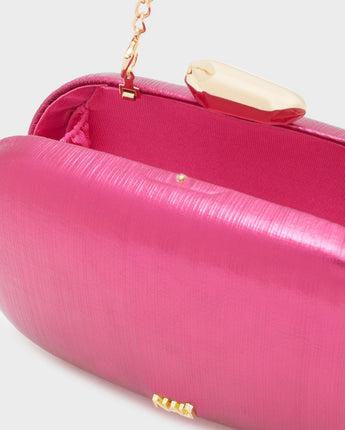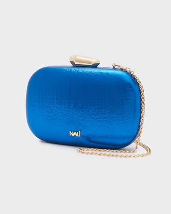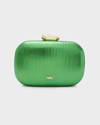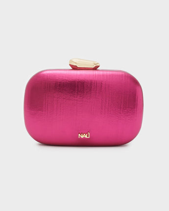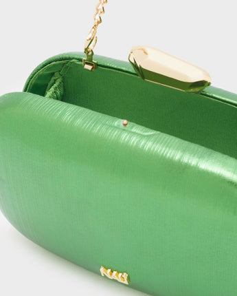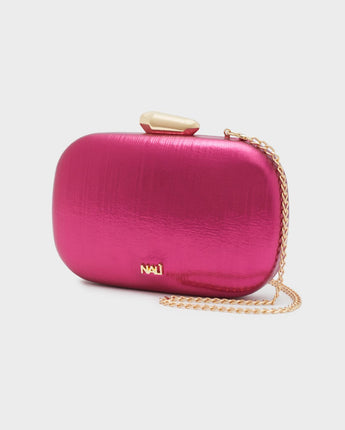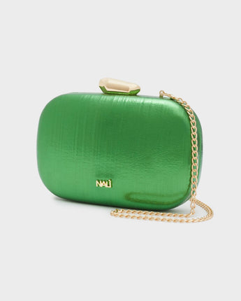 Giada è una borsa piccola da cerimonia con chiusura a scatto con forma ovale geometrica dorata. Disponibile in tre colori effetto metalizzato. E' anche dotata di tracolla metallica color oro per garantire comodità.