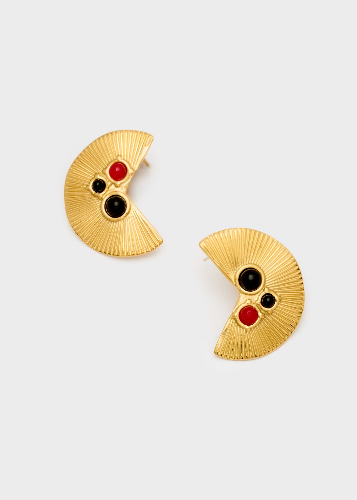 Questi orecchini semicerchio in metallo dorato con pietre colorate sono la scelta intelligente per chi vuole brillare con autenticità. Il loro design originale e luminoso cattura lo sguardo e valorizza il tuo viso, mentre la qualità costruttiva garantisce una bellezza duratura nel tempo.