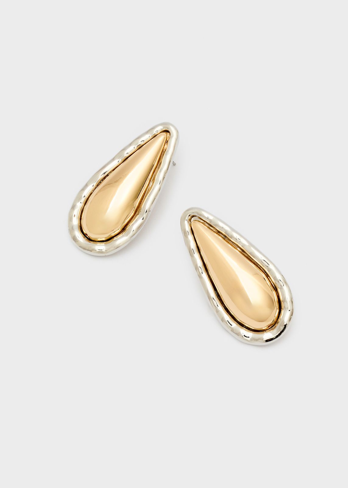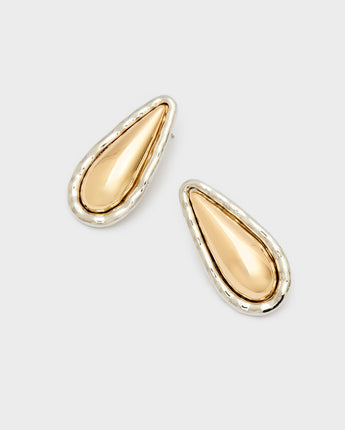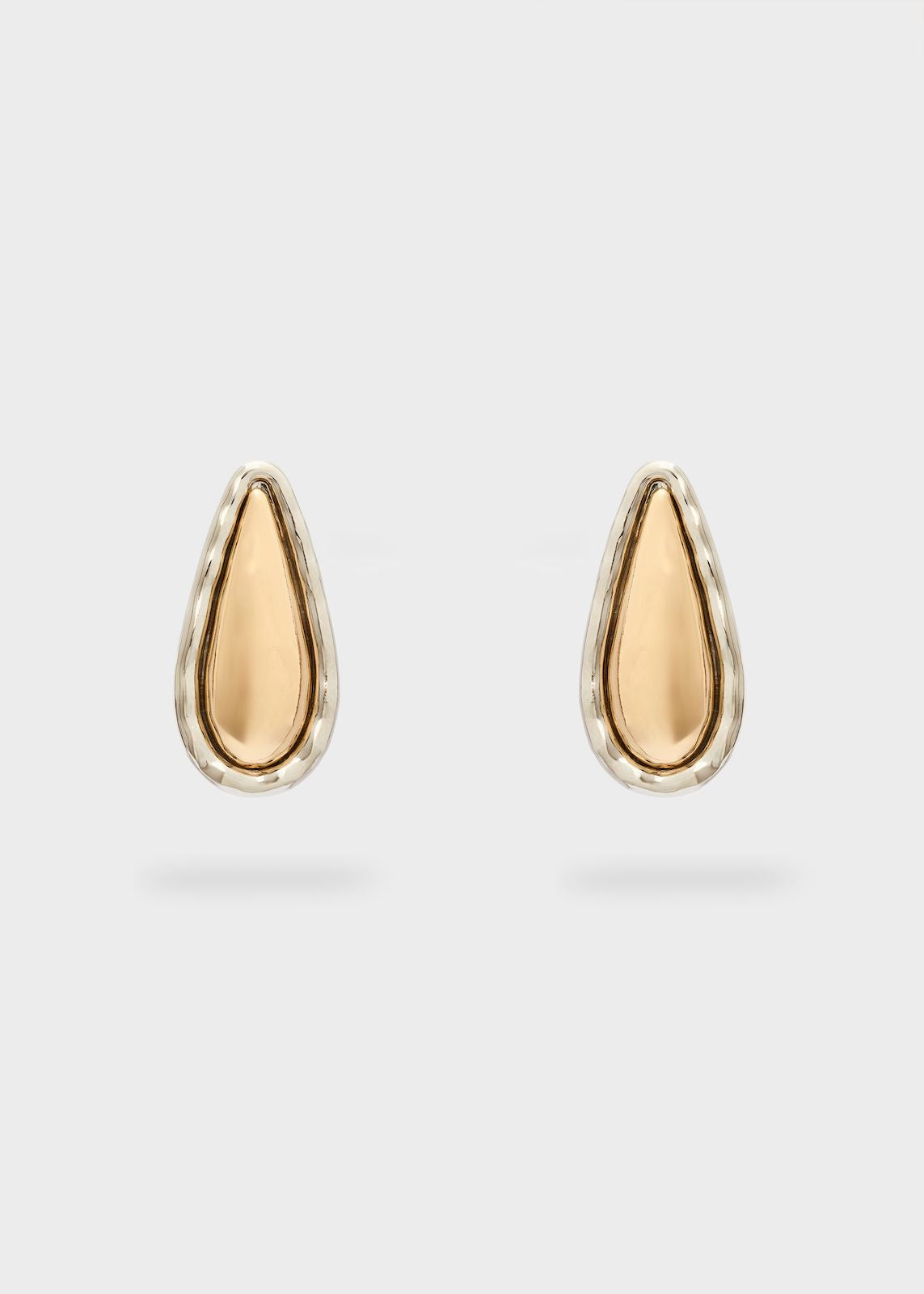 Gli orecchini a lobo Nalì combinano una goccia dorata raffinata con un contorno argentato martellato, creando un contrasto che cattura l’attenzione senza eccessi. Questo accessorio minimal è ideale per chi cerca un tocco di eleganza discreta che valorizzi ogni look con semplicità e stile. Perfetti per accompagnare ogni occasione con classe senza rinunciare alla modernità.