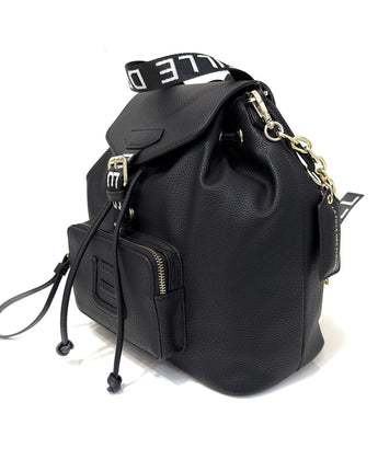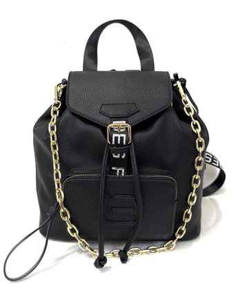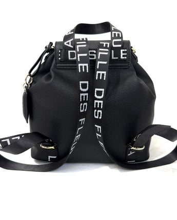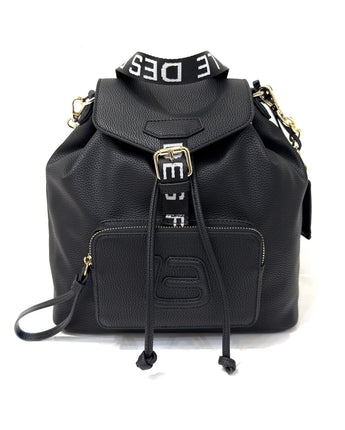 Lo zaino Albatros presenta una doppia chiusura, una con coulisse e una con patta logata e fibbia. Arricchita di una tasca frontale con chiusura a cerniera e diversi taschini interni, risulta molto capiente. Gli spallacci in tessuto logati e regolabili garantiscono comodità e leggerezza. Presenta una manico corto per portabilità a mano e uno in metallo color oro per portabilità a spalla, rendendo Albatros uno zaino versatile. Arricchito, anche, di un ciondolo decorativo logato in tinta.