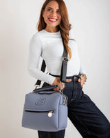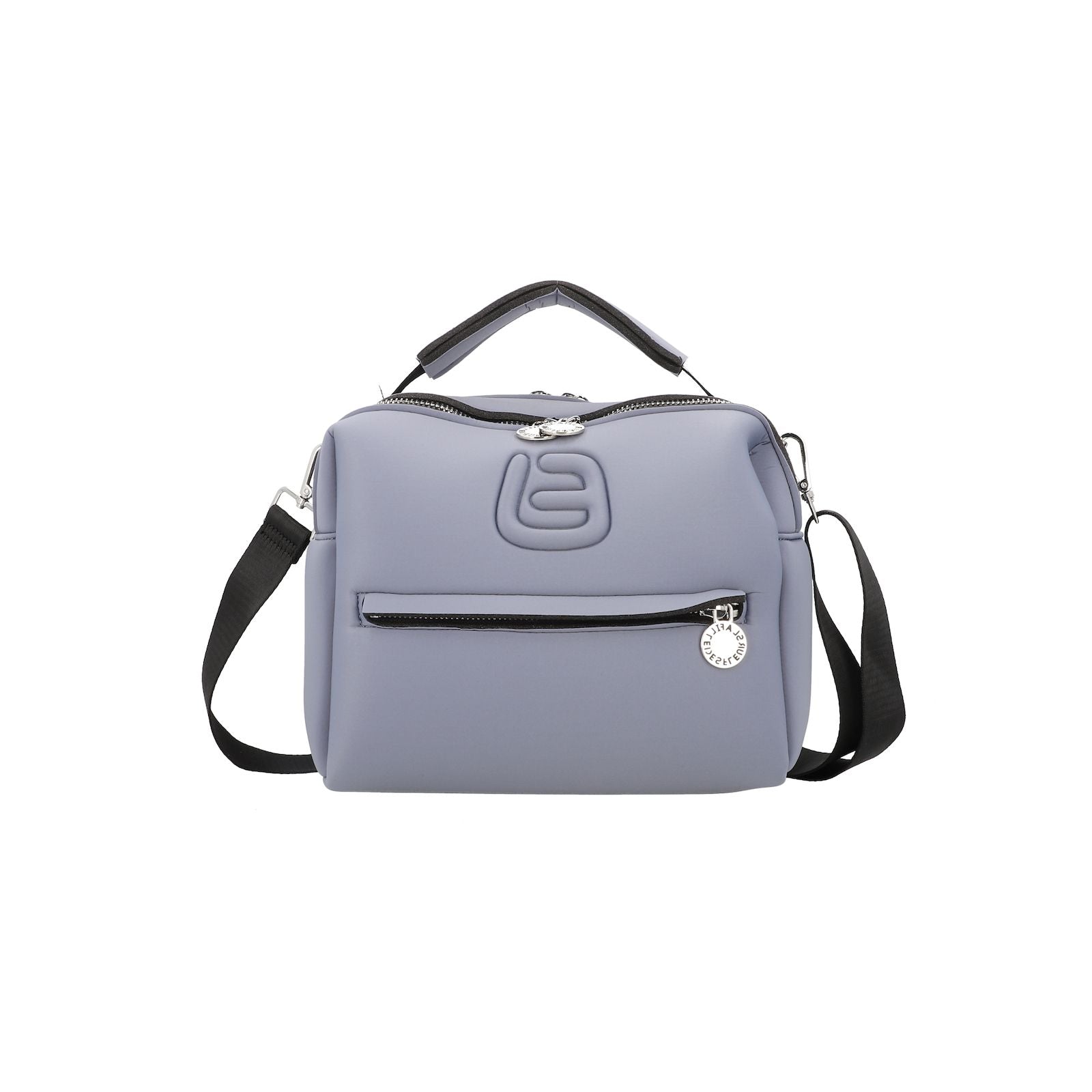 Gaynor è una borsa capiente e leggerissima, grazie alla sua composizione in techno fabric. Presenta una comodissima chiusura a cerniera e un taschino più piccolo sulla parte anteriore. Al di sopra il logo tono su tono. Presenta un manico centrale per la portabilità a mano e una tracolla in tessuto, regolabile e removibile.