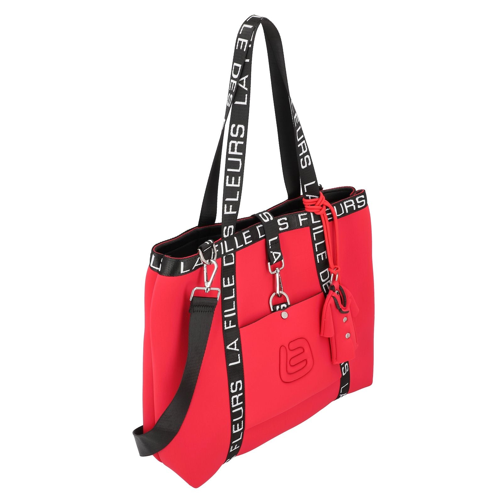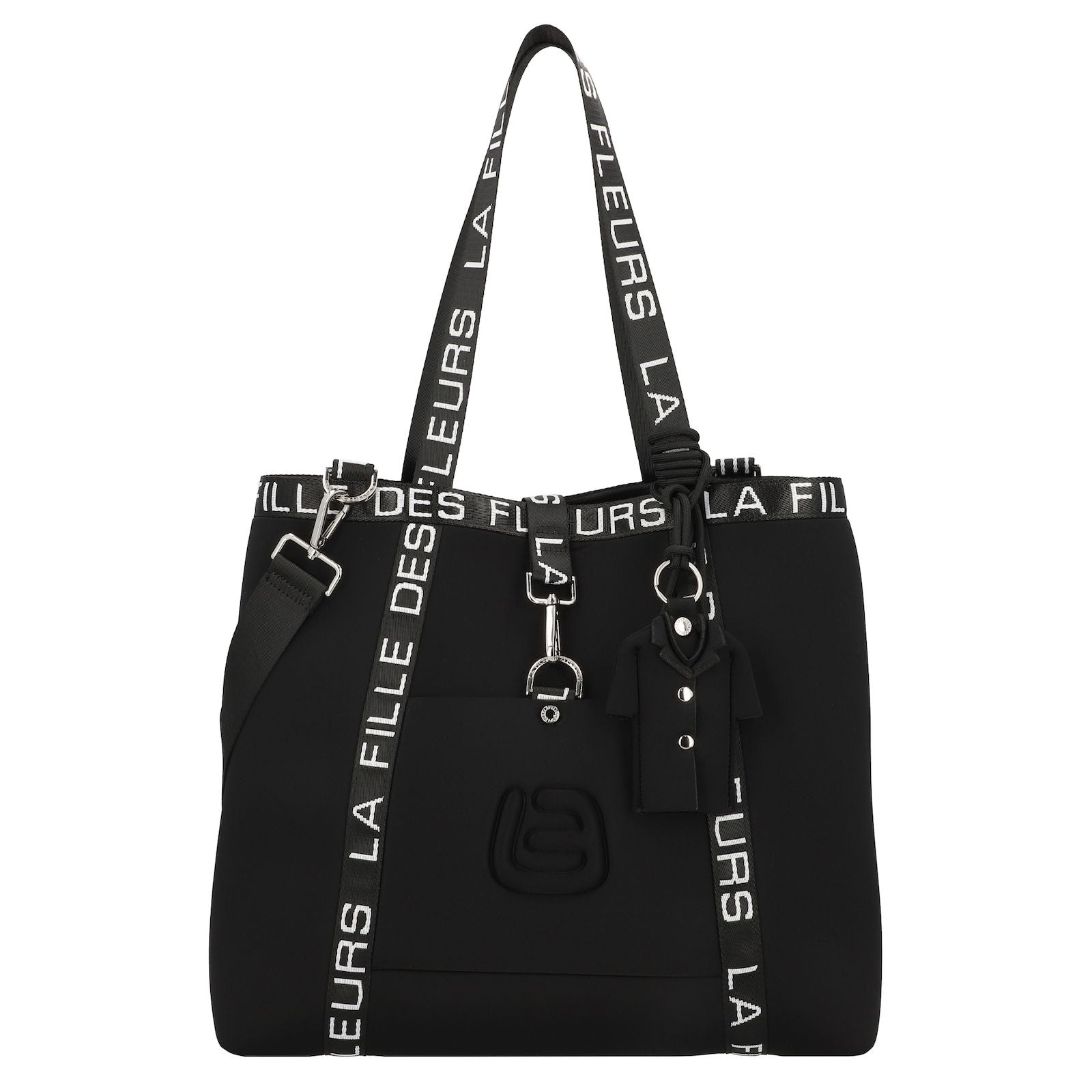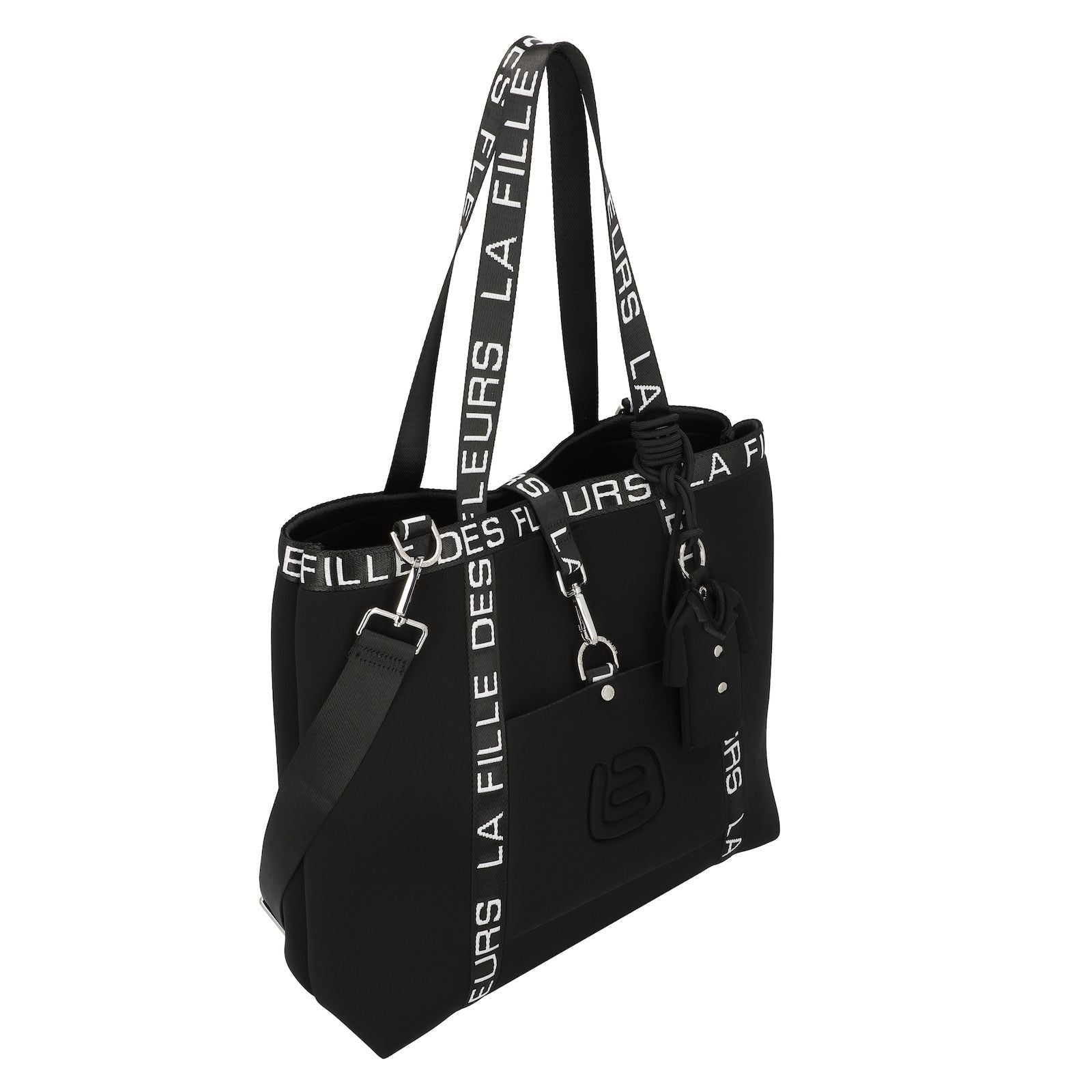 Kelsi è una borsa grande in Tekno Fabric comoda, pratica ed originale. Presenta il caratteristico nastro logato della linea lunga il bordo superiore e lungo i laterali del taschino anteriore. La tasca anteriore si presenta logata tinta su tinta e chiusa con un moschettone in color argento. Il manico è in tessuto nero logato per portabilità a spalla. Dotata di tracolla nera in nastro regolabile. Kelsi è arricchita di un ciondolo decorativo removibile.