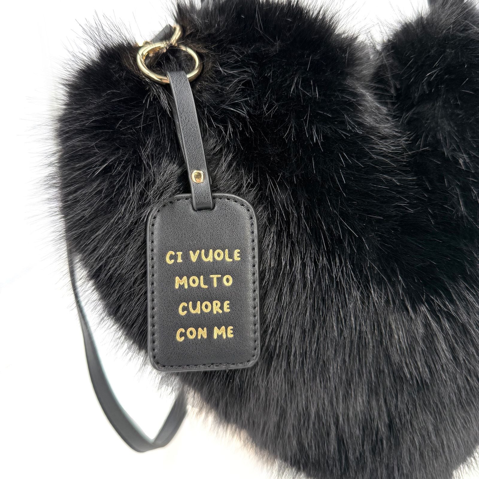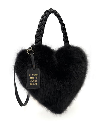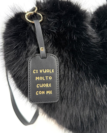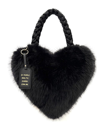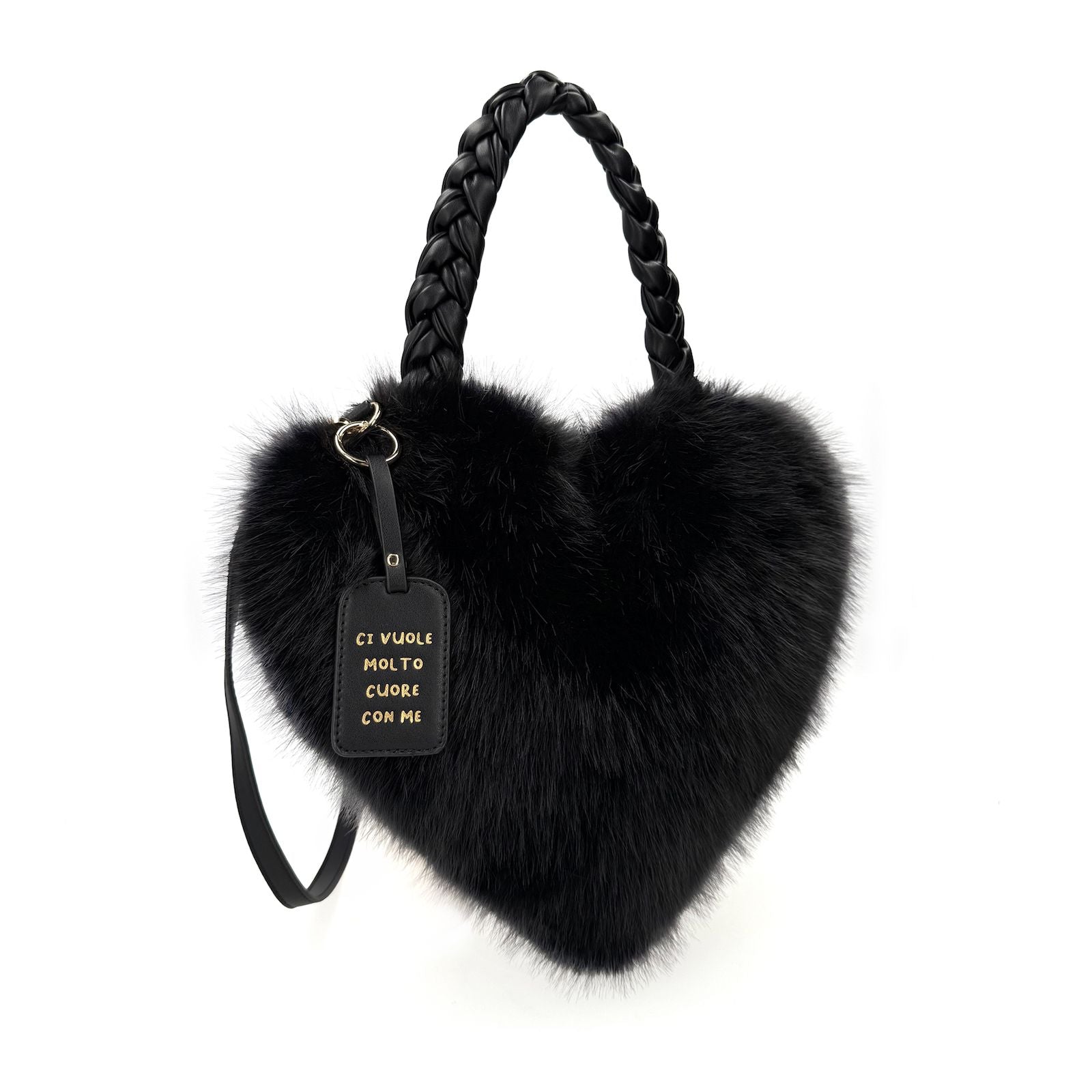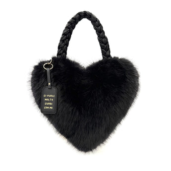 La Borsa a mano Fur Heart è in ecopelliccia, con chiusura a bottone metallico. L'interno è foderato, con taschini porta oggetti. Il manico è in ecopelle intrecciato in tinta. Presenta un ciondolo con riportato il claim " Ci vuole molto cuore con me". Fur Heart è una borsa originale, morbida e alla moda!