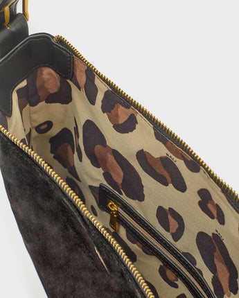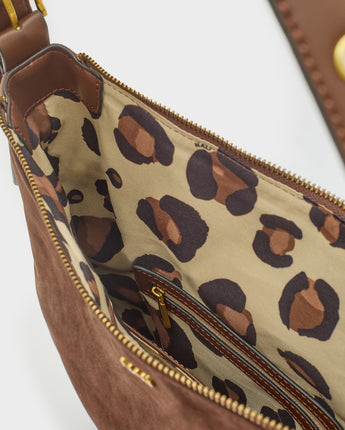 Joanne è una borsa compatta e capiente, in ecopelle martellata e manico regolabile arricchito di elementi color oro. All'interno è foderata con effetto maculato per dare grinta al tuo look. I taschini interni permettono l'organizzazione dei tuoi effetti personali.