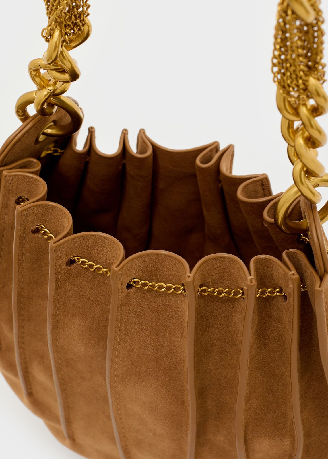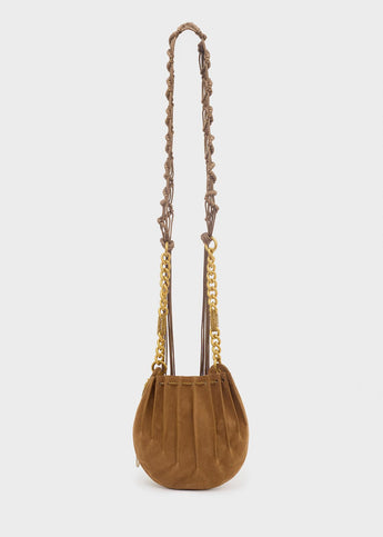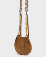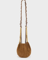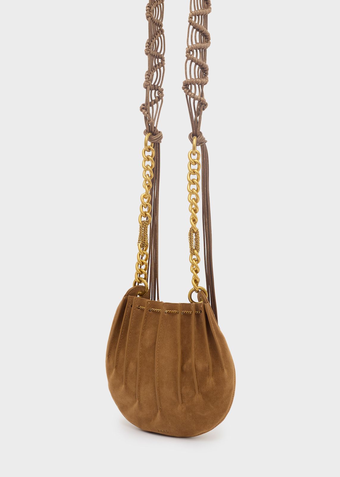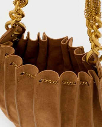Evissa è una chicca della collezione di Nalì. La sua forma a conchiglia, nella sua versione small, unita al camoscio rendono Evissa una borsa particolare ed originale, ma allo stesso tempo comoda e versatile. Presenta un manico inanellato in color oro. L'interno è sfoderato. La borsa non è strutturata, ma si presenta morbida.