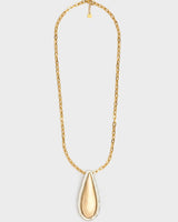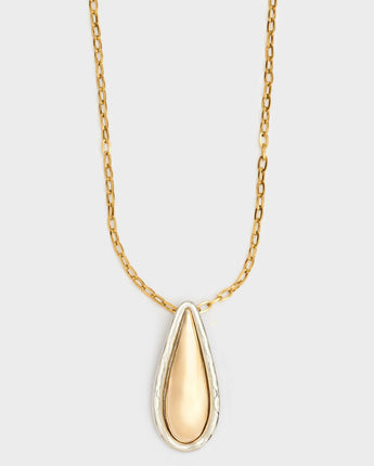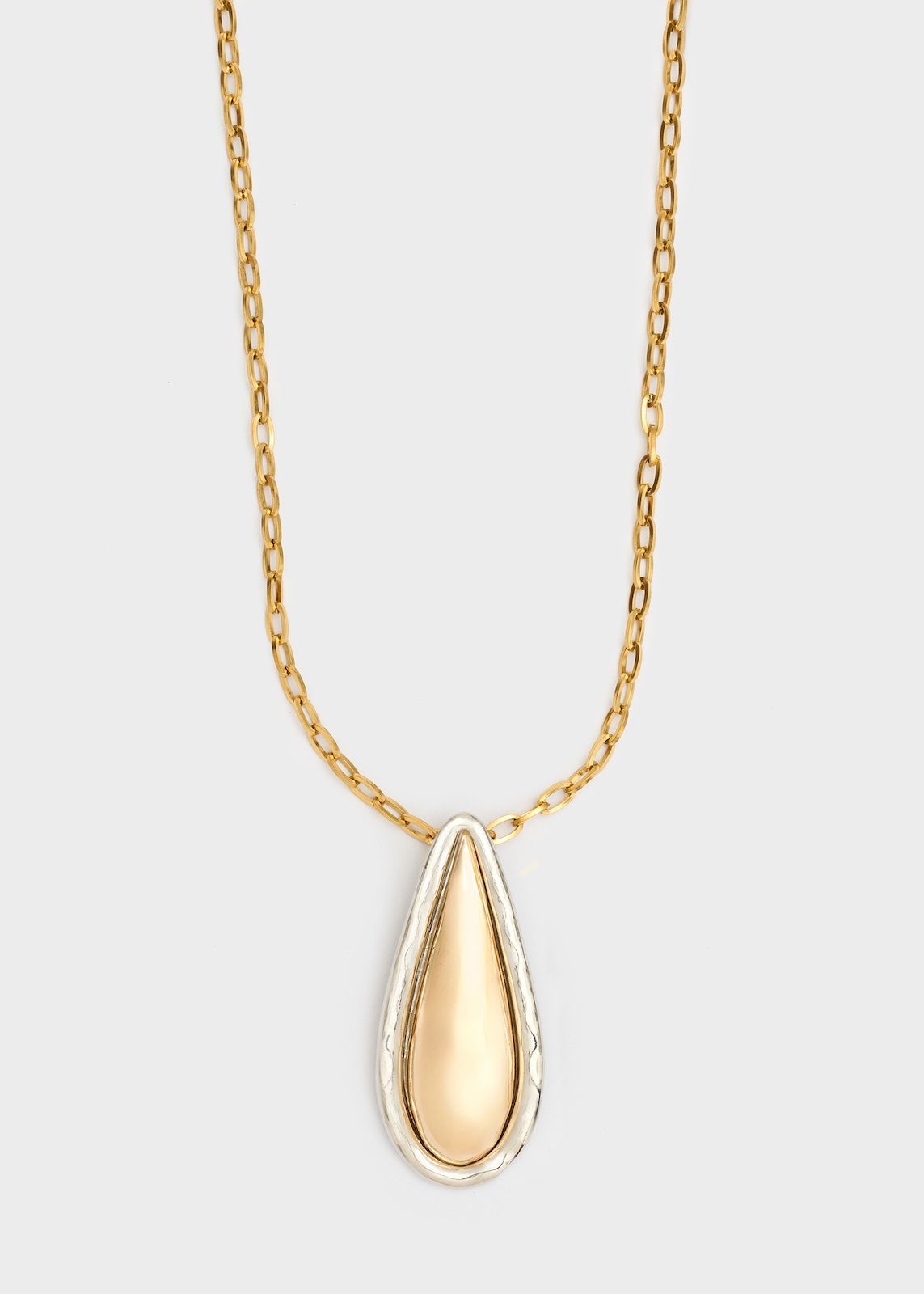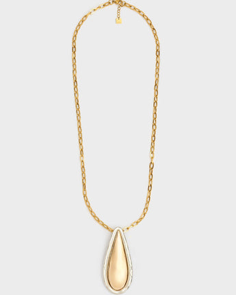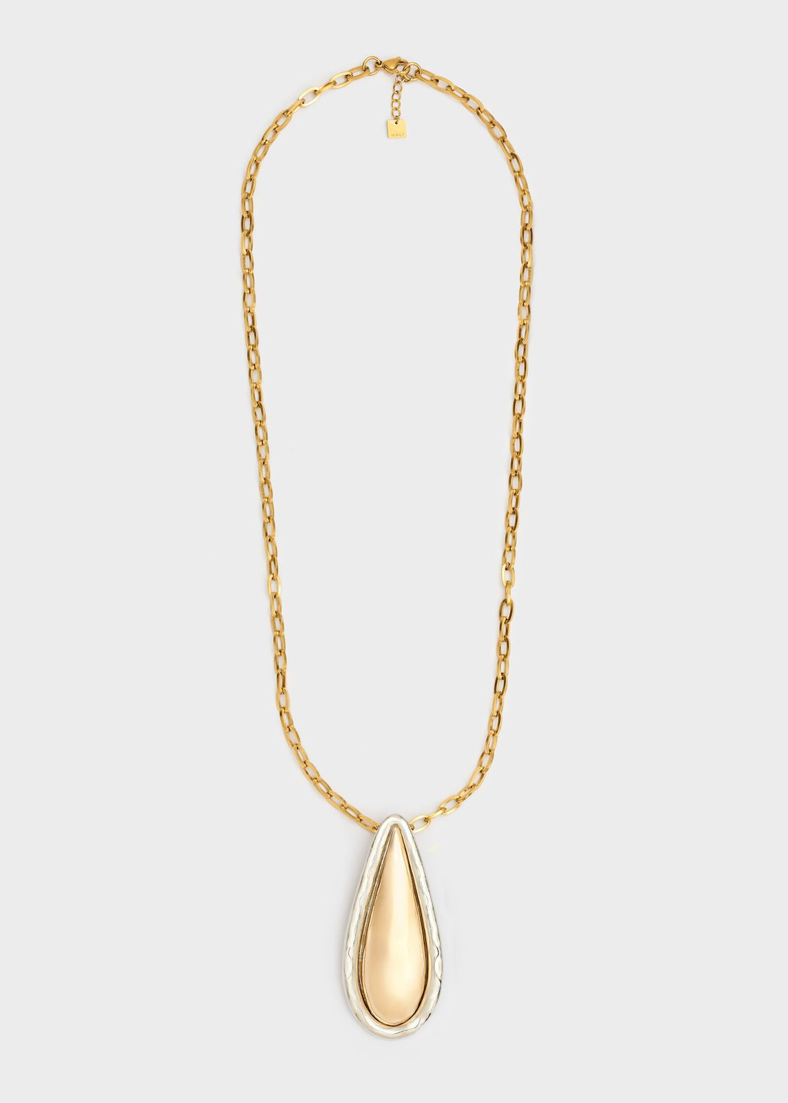 La collana drop di Nalì presenta una maglia in color oro e un pendente grande a goccia in color oro e color argento. Perfetto per arricchire i tuoi look eleganti!