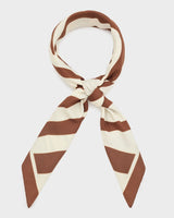 Il foulard di Nalì presenta una fantasia a righe multicolore e un bordino in tinta. Un accessorio che dona carattere e personalità al tuo outfit.
